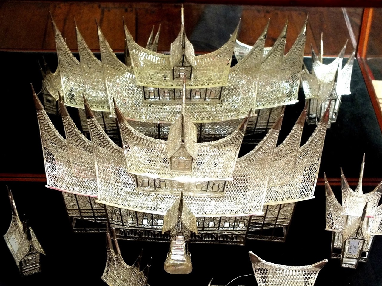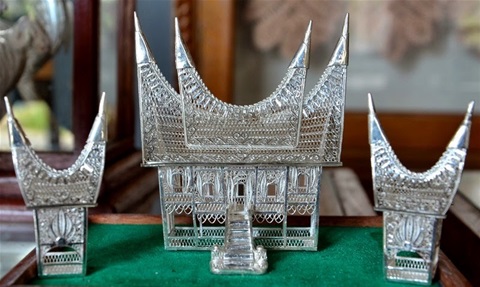 Koto Gadang motif of silver made in various forms such as jewelry, various kinds of clothing accessories, various displays to miniature Minang traditional custom home. KotoGadang silver has a subtle motif, color is not shiny, with such an impression in shades of milky white doff elegant. Lightweight and elegant, when combined with the beautiful songket Koto Gadang and subtle, suitable to attend formal occasions and parties.