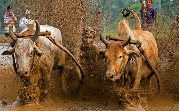Dalam event ini, para petani akan guide dua lembu untuk berlari laju di sawah berlumpur sambil memegang kayu yang diikat pada ekor Lembu mereka. Pengemudi kena kuat dan steady supaya Lembu stay straight, sambil balance diri supaya tak jatuh ke lumpur. Bayangkan Lembu lari laju dengan lumpur terpercik ke udara memang penuh adrenalin!